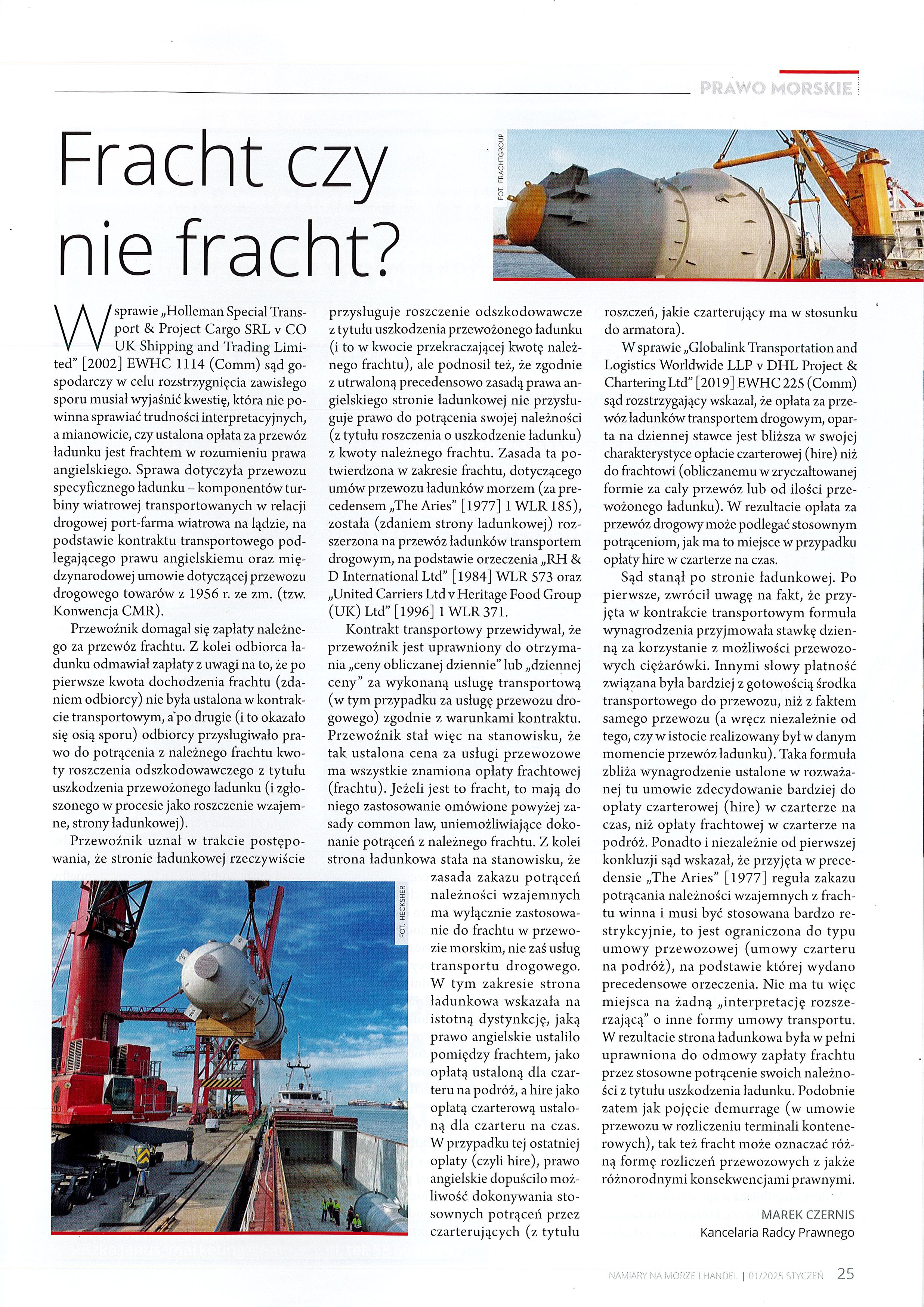 NAMIARY na morze i handel 01/2025 zamieściło artykuł: "Fracht czy nie fracht" Autor: Marek Czernis Zapraszamy serdecznie do lektury.
