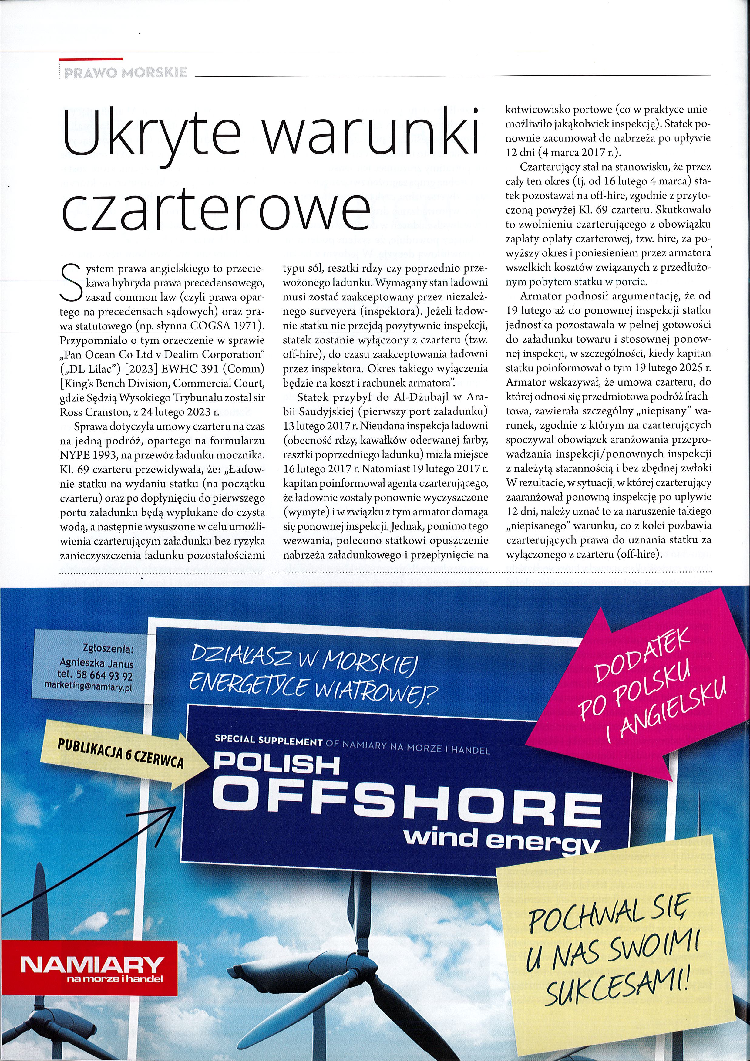 NAMIARY na morze i handel opublikował artykuł: Ukryte warunki czarterowe Autor: Marek Czernis Zapraszamy do lektury